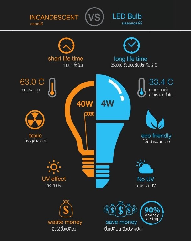 การคำนวณค่าไฟฟ้าเมื่อเปลี่ยนมาใช้หลอดไฟ LED
