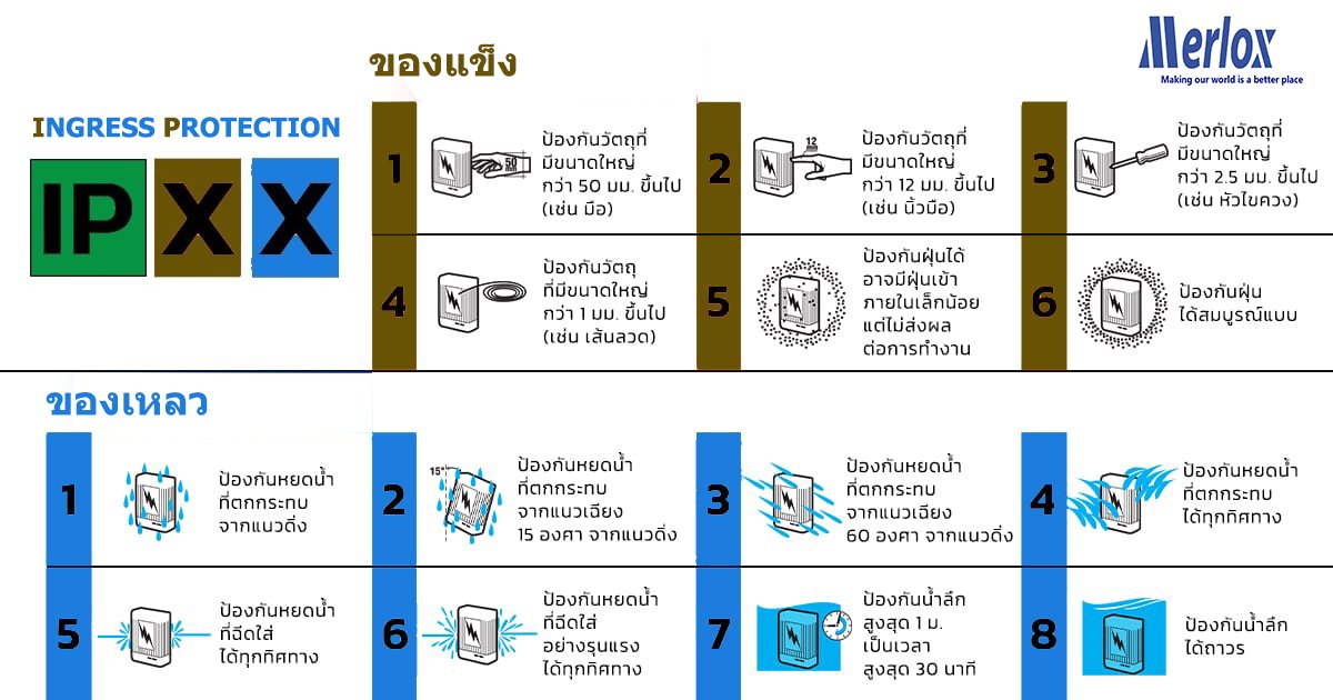 ตัวอย่างอุปกรณ์ส่องสว่าง และค่า IP Rating ที่จำหน่ายกันอยู่ในปัจจุบัน